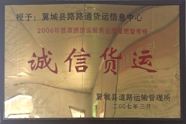 憑借貼心的服務(wù),在客戶群體中和運(yùn)輸市場(chǎng)樹立了良好的信譽(yù),多次被翼城縣運(yùn)管所和運(yùn)輸協(xié)會(huì)授予質(zhì)量信譽(yù)考核誠信企業(yè)。